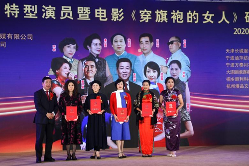 乘2020宁波时尚节暨第24届宁波国际服装节的东风,10月23日,宁波启润影视文化传媒有限公司、宁波索科纺织股份有限公司、宁波华博会议展览有限公司携手在宁波国际会展中心举行了首届中国特型演员暨《穿旗袍的女人》研讨会,来自全国各地的10多位特型演员与30余位国内优秀旗袍美女前来参会,旨在联合散落在全国各地的中国影视界特型表演艺术家,共同探讨特型演员的职业前景和发展方向,同时也为电影《穿旗袍的女人》出谋划策、添砖加瓦。 顾名思义,特型演员,是特殊造型演员的简称,多是由于剧情的需要或为了达到某种特殊的艺术效果、使用的具有特殊外型条件的角色扮演者。具体来说,就是当影视剧中出现为世人所熟悉的著名历史人物或当代名人、领袖时,为了在银幕上真实地再现这些人物的外貌,需要容貌相似或经过化妆达到形似的演员来扮演。据了解,特型演员原本只是从前苏联引进的概念,现已为我国独有,成为中国人集体缅怀的一种方式。 会上,特型演员们各自介绍了自己的饰演角色和演艺经历。曾在《伟人父子》、《时代天骄》等多部影视剧中饰演毛泽东的中国伟人风采艺术团特型演员徐廷阳,曾在电视剧《末代皇帝》、《红色追剿1949》中饰演周恩来的解放军福建海军基地军乐团教官、特型演员甘忠明,一起上台再现了毛泽东、周恩来的伟人风采;来自北京、上海等地的业余特型演员宋美丽、秦红霞,也双双上台表演宋庆龄、宋美龄两姐妹;上海通俗文艺研究会副会长、宁波籍的业余特型演员江琴则饰演邓丽君,并精彩演绎了邓丽君的拿手歌曲《甜蜜蜜》,她的演唱袅娜委婉酷似邓丽君风格,赢得全场喝彩。 因女性特型演员多穿旗袍,故研讨会把特型演员和电影《穿旗袍的女人》相联系。会上,辽宁大连民族学院教授宋君带领大连颐缘旗袍传统文化活动中心的旗袍佳丽表演了旗袍秀《回到那年》,启润影视董事长李启涵全程伴唱;宁波启润影视舟山艺人汇张亚维等旗袍佳丽也上台表演了节目《水墨青花》;宁波罗裳艺术社暨宁波云霞时装队部分队员也表演了节目。 据介绍,特型演员,除了在人物传记或事件专集里能成为当之无愧的主角外,在其他影视剧中都镜头不多,但却事无巨细皆要求严苛:要做到貌似神似酷似。这使特型演员要具备比其他演员更多的吃苦耐劳、奉献精神,因哪怕他们只有一个镜头一闪而过,也需要他们拿出百倍的精神来认真表演、完美呈现,因镜头一旦上到银幕、荧屏时,外形上的细节就将被放大三百多倍,故作为家喻户晓的领袖、名人等,任何小瑕疵都是不被允许的,这就需要特型演员为一刹那的镜头付出十足的辛劳,然因剧中镜头少他们的收入却不丰,故做特型演员首先要能甘愿吃苦、自觉奉献。当然,他们也有其他人体味不到的“乐”,当他们挥着名人一样姿势的手势、走着名人一成不变的步伐、说着名人原汁原味的乡音时,观众强烈的感情流露和集体经久不息的掌声,会让他们沉浸在由自己创造的角色能引起亿万人民激情回忆的欢乐中。 会上,还播放了宁波启润影视公司历经五年拍摄的有关电影《穿旗袍的女人》、《天下逸夫》的纪录片;同时播出上海电影集团董事长任仲伦访问启润影视、邵逸夫侄孙女邵辉讲述《天下逸夫》影片名的纪录视频等。