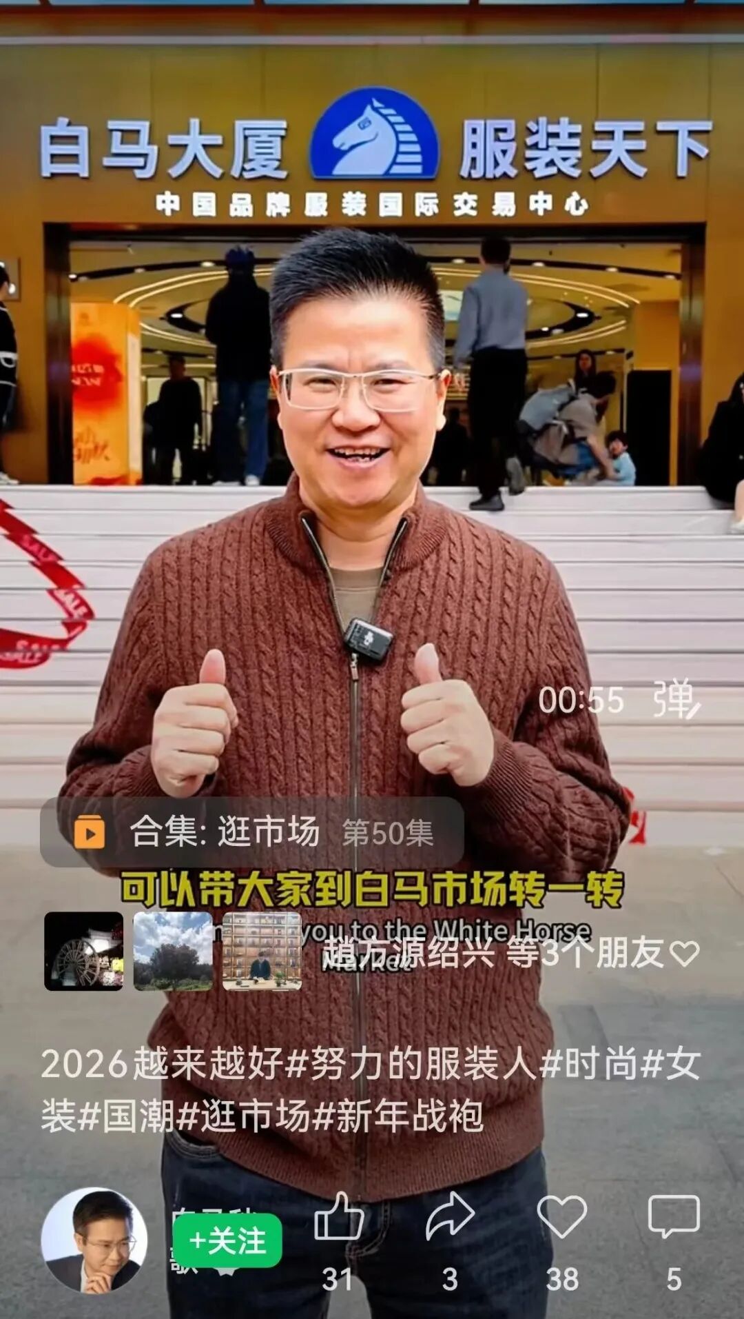 ![]() 在责任感的驱动下,凭借二十年行业深耕经验,黄秋权经常在服装皮具专业市场流通领域论坛及会议上发表观点,致力于提升白马的行业声量与影响力。转战短视频初期以行业观察杂谈为主,其中对BC端市场融合的深入探讨,赢得众多同行点赞。随后,他不止满足于自身发声,更希望传递客户声音,因此开设“品牌主理人专访”栏目。每周抽出半天走访市场,甚至利用周末时间,粉丝量与视频播放量持续攀升,声量渐大。回顾一年创作,他表示数据虽有波动,但心态坦然:“‘白马秋歌’这个名字不仅是我对白马的认同、对行业的热爱,也是传达我的一种人生态度:‘白驹过隙,春夏秋冬,一年四季,岁月如歌’,高低起伏是人生常态,如同唱歌一般,我要直面它们,不断探索,不断创新,不断成长。”