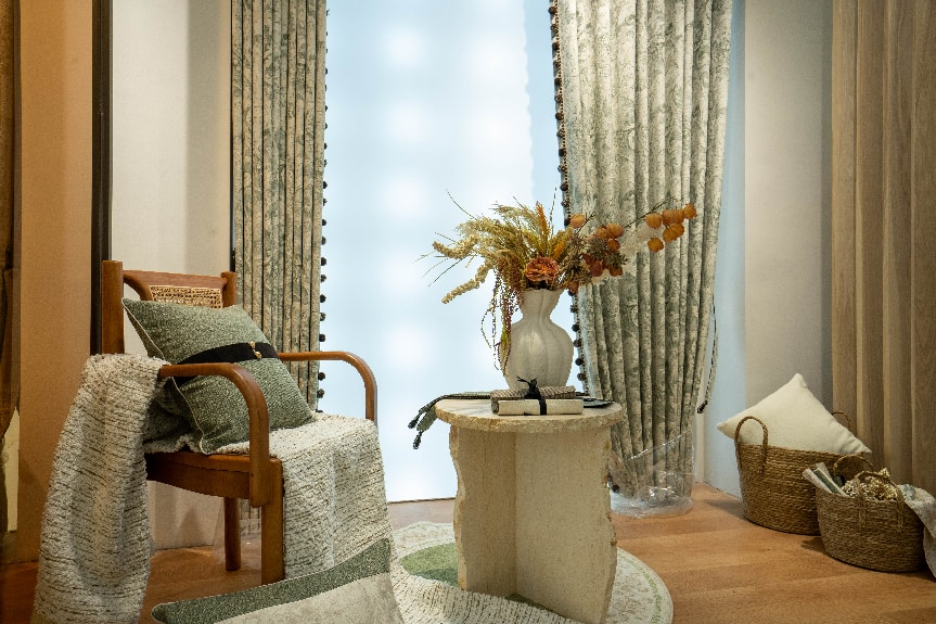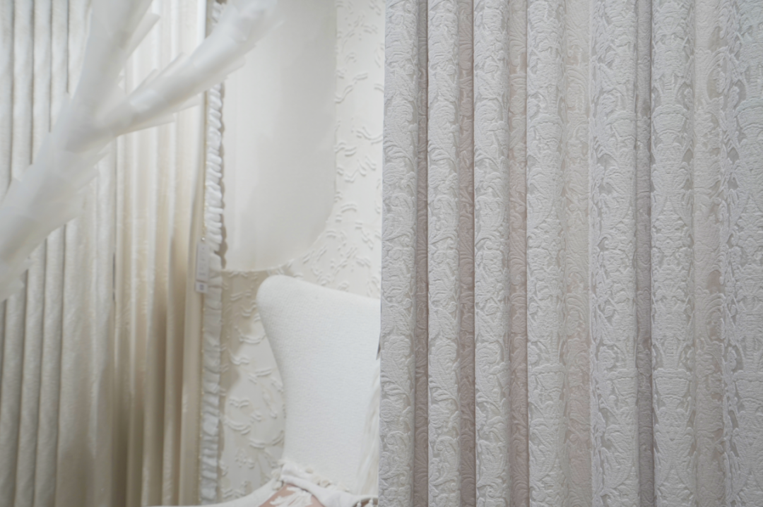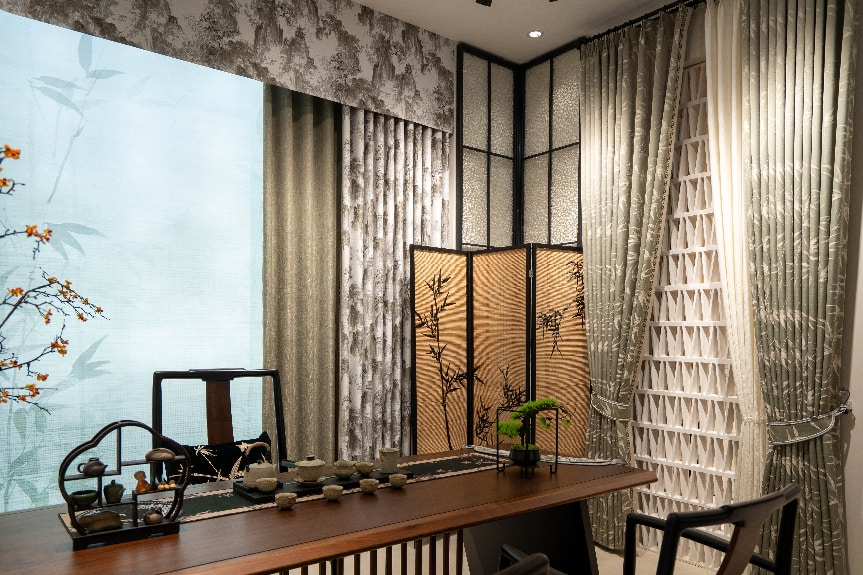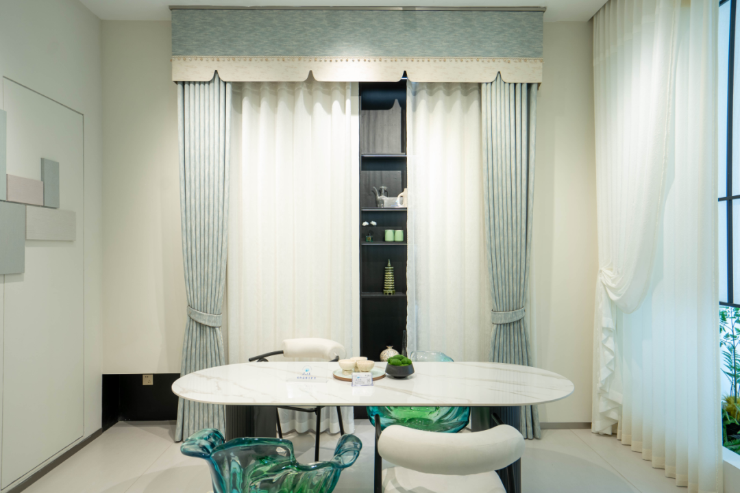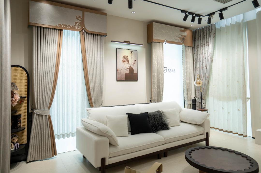 入驻海宁中国家纺城已有十多年、2019年正式将定位转向中高端、差异化市场的奢缇雅品牌窗帘,作为许村本土企业,见证了海宁家博会与许村家纺知名度、影响力逐年提升的盛况,骄傲之余,更多的是不敢松懈,这次不仅重新装修了展厅,也带来了创意升级的最新系列产品。“我们的强项就是在于设计,只做自己原创的东西,且善于将服装的面料及工艺用在家纺上,为大家带来更精益求精的产品。现在装修风格越来越偏向于做减法,摒弃繁复设计,这次展会,我们会通过棉麻、羊毛材质提升,文化审美提升的产品,来体现不同质化的格调感。”奢缇雅品牌窗帘主理人金新锋在采访中告诉我们。