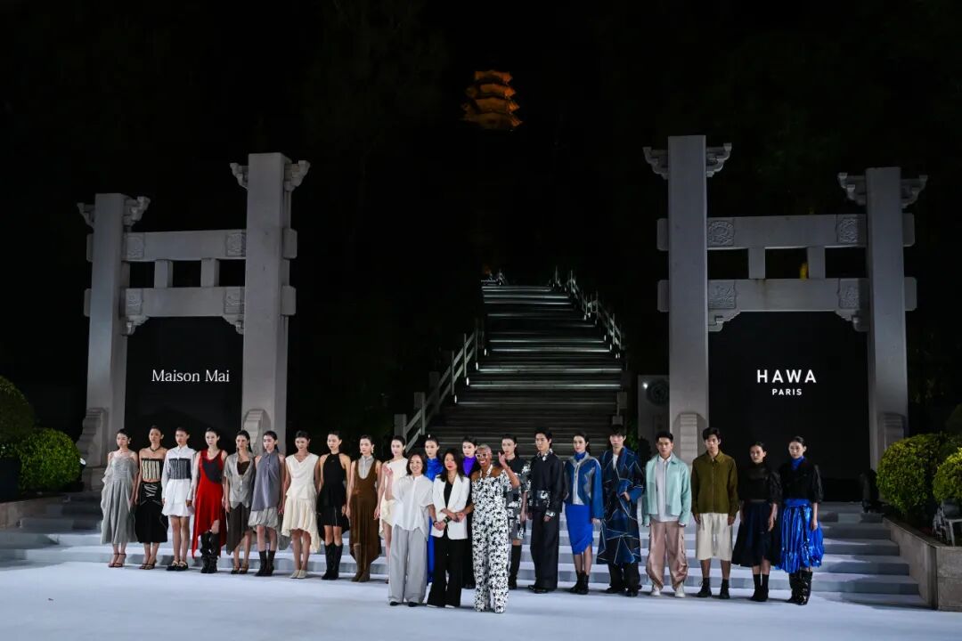 ![]() 一方面,国际对话带来巴黎塞纳河畔的浪漫剪裁与解构主义。Perspectives Croisées中法时尚 交汇视角,中国设计师品牌Maison Mai与法国设计师品牌HAWA Paris 共同呈现了一场东西方时尚的对话——设计师李媚媚,携其品牌Maison Mai回归故乡,将闽南传统建筑的浪脊檐⻆、海浪的流动曲线与燕尾脊的飞扬弧度解构为极具东方意境的肩线与廓形,不张扬却有力;HAWA Paris 始终扎根于巴黎本土工坊,以最纯粹的高级定制精神打造当代服装,坚持将传统⼯艺与现代设计语⾔相融合,呈现法式时尚独特的温度与灵魂。