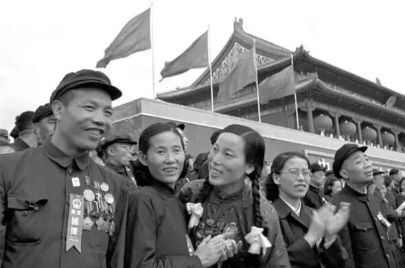来自解放区的女干部、女战士则剪齐肩短发,叫解放头,是代表“妇女翻身得解放”的发式。年轻姑娘们还是喜欢梳辫子,不过从民国流行的单辫变成了双辫,长辫变成了中短辫。