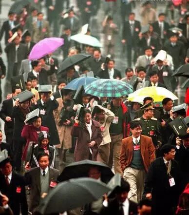 时代越往前进,代表们的服装就越来越呈现多样化,穿着打扮成为了表达个人诉求和强调个人身份的最好工具。1998年3月18日九届全国人大一次会议举行第六次全体会议,代表们冒着绵绵春雨出席会议,不少女代表选择身着呢大衣配套装裙,展现职业感。