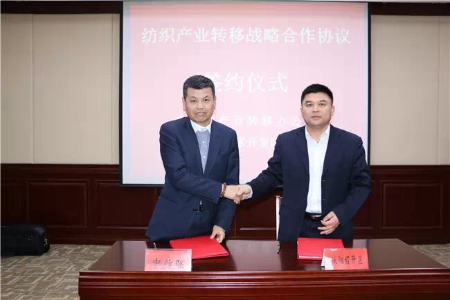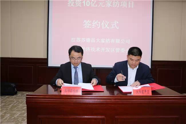沭阳带来新商机 当下纺织行业发展的新常态特征日益凸显,对广大纺织企业提出了更高的调整转型的要求。原材料走势不确定性增强、市场需求增长放缓、综合成本持续上升等因素的影响突出,企业发展压力和挑战将持续增加,一批中小微企业面临生存困境。4月10号,江苏省沭阳县在中国纺织工业联合会四楼会议室成功举办“中国(沭阳)纺织产业区域转移投洽会”。 中国纺织工业联合会党委副书记陈伟康、中国纺织工业联合会会长助理、中国针织工业协会会长杨世滨、中国纺织工业联合会副秘书长、中国纺织工业联合会产业转移工作办公室常务副主任杨峻、沭阳县委书记、沭阳经济技术开发区党工委书记胡建军、沭阳经济技术开发区投资促进局局长魏伟等领导,中国恒天经纬纺织机械股份有限公司、北京纺织控股集团、中信集团国际商贸有限公司等在京的部分央企、国企相关负责人和企业家以及人民日报、《纺织服装周刊》等国内10余家媒体应邀参加了会议。 在会上,沭阳经济技术开发区投资促进局局长魏伟与中国纺织工业联合会产业转移工作办公室杨峻、江苏苏锦昌大家纺有限公司蔡亮分别签署了产业转移战略合作协议和总投资10亿元的家纺项目协议。