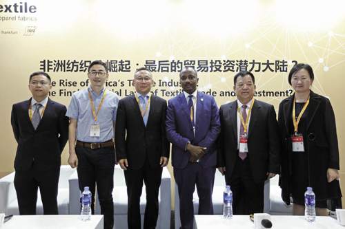 9月初举行的中非合作论坛北京峰会吸引了全球的目光,国家主席习近平提出的未来3年和今后一段时间中非合作重点实施“八大行动”,更是开启了新时代中非合作的宏伟篇章。 “八大行动”第一条提出实施产业促进行动,鼓励中国企业扩大对非投资,在非洲新建和升级一批经贸合作区。行动提出调动各方积极性,鼓励中国企业加强对非洲产业投资,特别是制造业等传统及新兴领域扩大对非洲投资,支持非洲更好融入全球和区域价值链。“八大行动”还提出“贸易便利”,通过提升贸易便利化水平,促进非洲经济增长和可持续发展,这些目标无疑为中非纺织服装领域的全方位合作指明了方向。 实际上,中国纺织业早已开启了全球化战略布局,近年来又敏锐地把目光聚焦到非洲这片土地上。内蒙古鹿王羊绒有限公司已经在马达加斯加植根了20年;阳光集团与埃塞俄比亚签署了9.8亿美元毛纺项目协议;今年1月,无锡一棉的埃塞30万锭棉纺项目开工建设;江苏联发也频频调研埃塞俄比亚,拟投资5亿美元建纺织工厂……还有更多的企业跃跃欲试,是什么吸引中国的优秀纺织企业奔赴遥远的非洲?那些已经在非洲耕耘多年的纺企又有哪些经验建议分享? 9月28日,由中国国际贸易促进委员会纺织行业分会、法兰克福展览(香港)有限公司共同主办,江苏省纺织工业协会特别支持的非洲纺织业专题对话会在国家会展中心(上海)举行。 中国纺织工业联合会副会长、中国国际贸易促进委员会纺织行业分会常务副会长徐迎新,埃塞俄比亚驻上海总领事馆副总领事Adamn Assefa Mukura,无锡一棉纺织集团有限公司董事长周晔,内蒙古鹿王羊绒有限公司董事长郑浩生,无锡中天丝路云联纺织股份有限公司董事朱兴建向100余位与会来宾分享了投资非洲的第一手信息。中纺联国际贸易办公室副主任刘耀中主持对话会。
