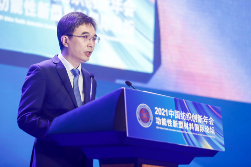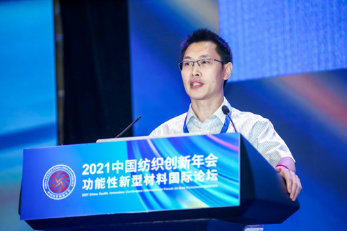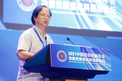 朱美芳院士在功能性新型材料国际论坛上作了《纤维新材料的创新发展与产业机遇》演讲。她从纤维新材料的能量管理、绿色环保和健康时尚三个方面解读纤维材料的功能化与智能化进展,重点阐述了纤维从单纯保暖到智能能量转换存储的纤维物理化学结构演变过程,并提出纤维材料功能化、智能化、柔性化的发展方向。