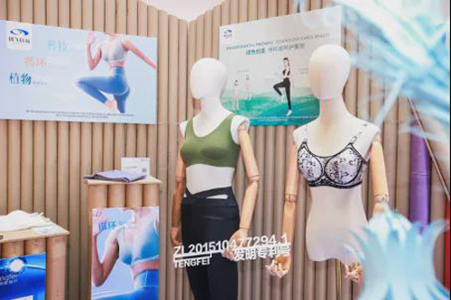 腾飞科技自1997年成立以来,一直坚持“用科技呵护美丽”的发展理念,这也是腾飞科技参展的初衷,本次展品主要包括:以更“少”的材质消耗获得更“大”容积和更“大”支撑强度的SOLA纤维棉芯、低面料消耗的无缝转换技术、SensElast 3D专利内衣等。腾飞科技一直在用减少浪费的方式来践行可持续的理念,通过本次展览走向市场终端,将技术与消费者的感受进行碰撞融合,真切推动可持续的消费与生活方式,也让更多从业人员看到可持续发展在行业内运用更广泛普及的可能,推进产业升级,发现、探索、推广更多服装行业可持续发展的解决方案,共同勾勒服装行业可持续循环链。