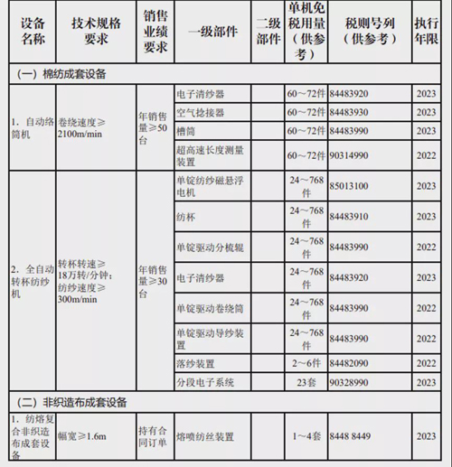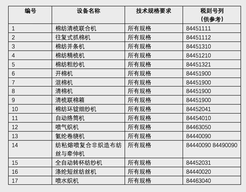 | 五部门调整重大技术装备进口税收政策有关目录,涉及棉纺和非织造设备 |