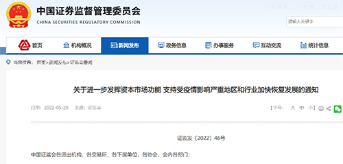 为支持受疫情影响严重的地区和行业加快恢复发展,证监会5月20日发布《关于进一步发挥资本市场功能支持受疫情影响严重地区和行业加快恢复发展的通知》(下称《通知》),推出了23条务实举措。