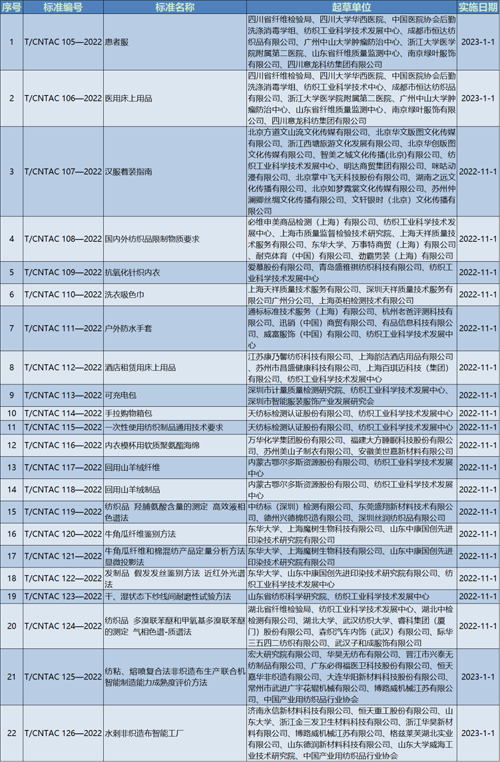 | 22项团标发布,有关汉服、抗氧化针织内衣、纺织品限制物质…… |