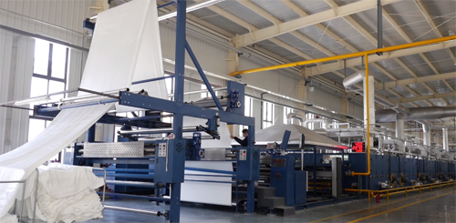 ![]() 鹰游新立成纺织科技公司总工程师孙素梅介绍,为了积极响应国家“双碳”和行业清洁生产的要求,鹰游集团启动了涤纶织物“闪染”免水洗关键技术及成套装备产业化项目研发。传统的涤纶织物是通过高温高压溢流染色,这种技术所用染料存在大量的分散剂,在染色后需要经过多道水洗去除涤纶纤维表面浮色,提高色彩牢固度,而水洗过程中会排出大量的印染废水,造成环境污染并增加企业环境治理成本。涤纶织物“闪染”免水洗关键技术及成套装备产业化项目创新提出了“以蒸代洗”的科学理念,发明了涤纶织物快速、连续、高效染色和固色(简称“闪染”)免水洗染色技术,并研制了专用成套装备,实现了涤纶织物清洁化高效染色。