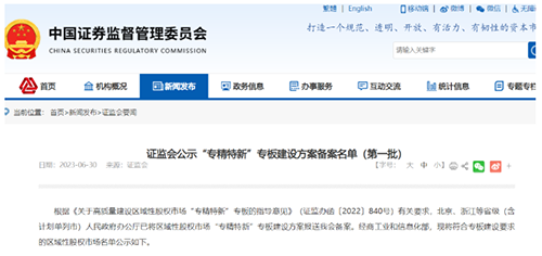 | 为中小企业提供金融支持,证监会公示首批“专精特新”专板建设方案备案名单 |