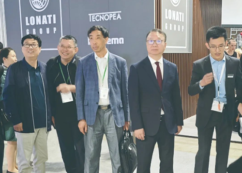 ![]() 2023年6月,徐建林(左一)随中国纺织工业联合会会长孙瑞哲(右二)率领的代表团到米兰考察。