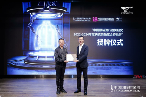 ![]() 此次《白皮书》发布,是七匹狼与中国服装设计师协会以“时尚探索者”身份交出的阶段性研究成果,同时为中国男装行业提供了更多的广阔思路与综合思考。论坛最后举行了授牌仪式,为表彰七匹狼对中国服装流行趋势研究所做出的贡献,中国纺织工业联合会副会长陈大鹏将“中国服装流行趋势研究2022-2024年度夹克类独家合作伙伴”名牌授予七匹狼。未来,七匹狼与中国服装设计师协会将邀请更多的专业研究团队加入到“白皮书”朋友圈,充分发挥合众之力,从理论的高度推进中国时尚产业的高质量发展。