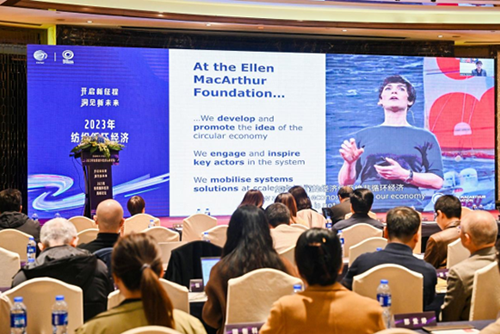 对话与交流:责任共建 携手开启新征程 围绕“国际机构的循环经济实践”这一话题,艾伦•麦克阿瑟基金会(英国)循环时尚、国际机构与政府事务高级政策官员瓦莱丽·博伊滕、世界自然基金会(WWF)上海区域主任任文伟、SGS风险管滕理解决中心中国区总经理岳庆松分别结合各自工作领域进行了实践分享和经验交流。