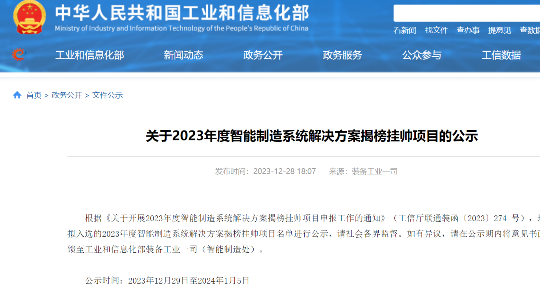 | 3家纺企揭榜!2023年度智能制造系统解决方案揭榜挂帅项目公示名单发布 |