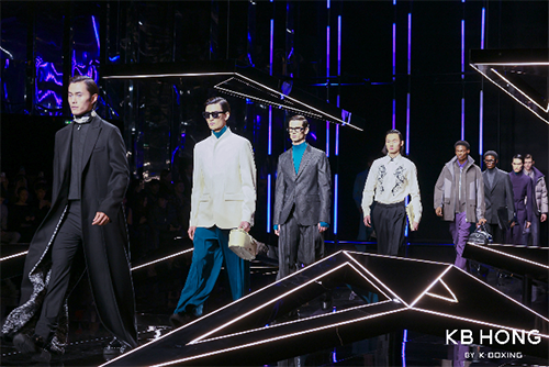 米兰时间2024年1月15日,劲霸男装高端系列 KB HONG第6次登陆米兰时装周官方日程。意大利时尚教父Sergio Salerni亲自担任秀导,在米兰Alcione剧院以“来自2080的收藏家”为主题开秀,意大利著名歌手、词曲作家马哈茂德(Mahmood)和好莱坞当红新生代演员泰勒·扎克哈尔·佩雷斯(Taylor Zakhar Perez)作为本次的重磅嘉宾前排看秀。
