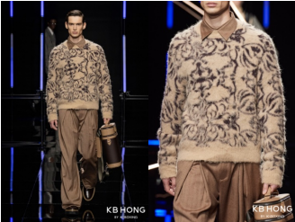 “收藏家,⼀个不受时间限制的男⼈。⼀个外表优雅、灵魂温柔的旅⾏家。深受东⽅与⻄⽅的影响,在旅⾏中收集情感和物体,⼀点⼀滴丰富着⾃⼰的灵魂。他与最古⽼的东⽅传统哲学深深共鸣,同时对未来也充满探索欲望。他神秘莫测,穿着讲究,剪裁得体,保持⼀贯的⾼雅品味。尤其注重细节,让基础的事物变得更加⾼级。在他的时间之旅中,他传承了中国古代⽂化丰富的典藏,将收集的纹样、器物等等装饰在现代精致的服饰之上,让服装变得独⼀⽆二。” 劲霸男装高端系列KB HONG的设计总监马西姆这样诠释。