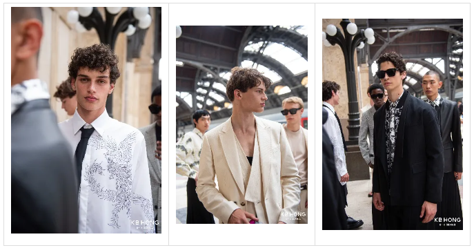 近距离展陈对面料的考验不言而喻。KB HONG SS25秀款不吝采用独家定制及奢侈品同季供应的意大利面料,同时观众能在秀款上看到些许高奢感中国制造面料的身影。遵循大热男装趋势,低调典雅的竖条纹、特殊肌理感材质、皮质与其他面料的异料拼接等,为优雅精致感的现代男士着装带出别样气质。