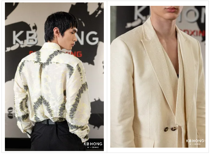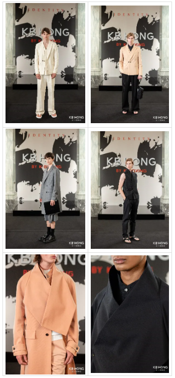 不对称、双层领的活化演绎,延续和创新了KB HONG标志性的交叠领设计,成就了全新中式交叠领西装、茄克、背心等大势单品。