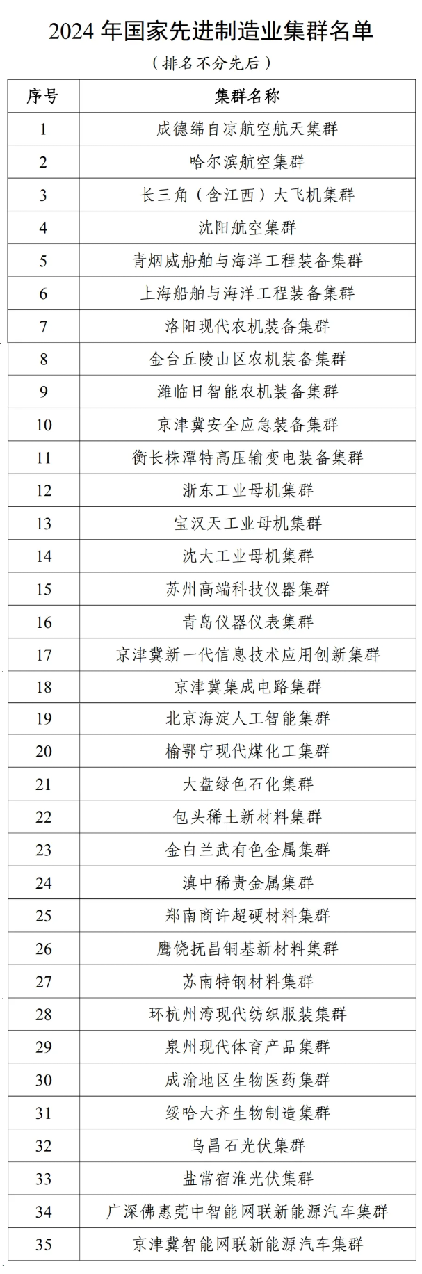 | 35个!2024年国家先进制造业集群名单公布 |