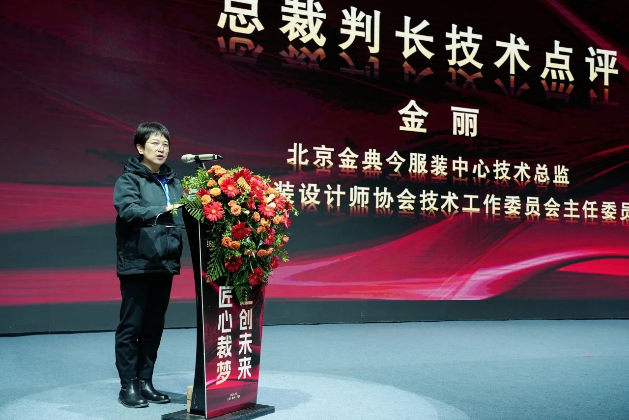 ![]() 北京金典今服装中心技术总监、中国服装设计师协会技术工作委员会主任委员、大赛总裁判长金丽作大赛技术点评。