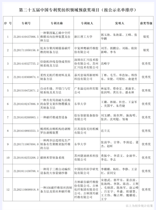 | 12项纺织领域专利在列,第25届中国专利奖评审结果公示 |