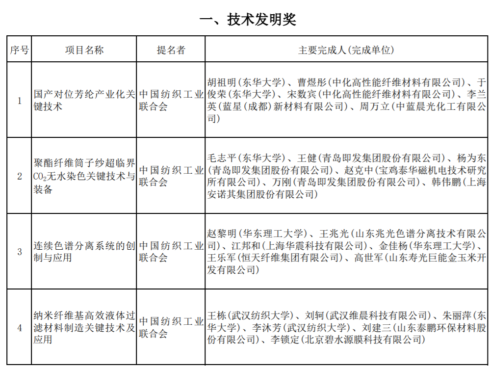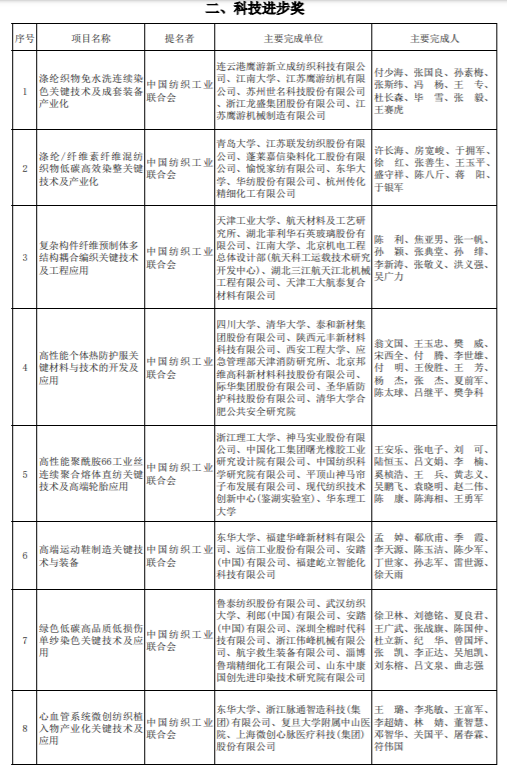 附:中国纺织工业联合会提名2025年度国家科学技术奖项目