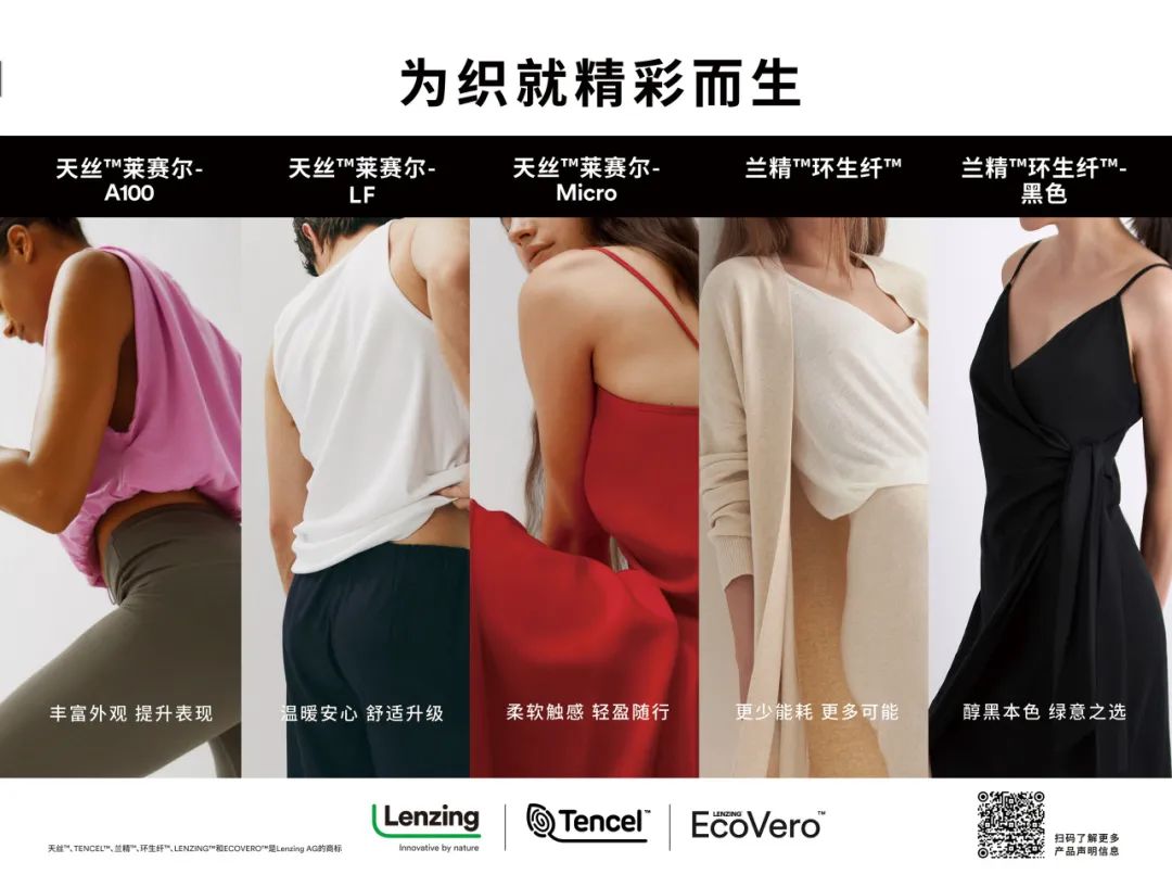 近年来,兰精集团以“为织就精彩而生”为主题,重点推出五大旗舰纤维——天丝™莱赛尔A100、兰精™环生纤™、天丝™莱赛尔纤维、天丝™莱赛尔微纤维、兰精™环生纤™黑色纤维。