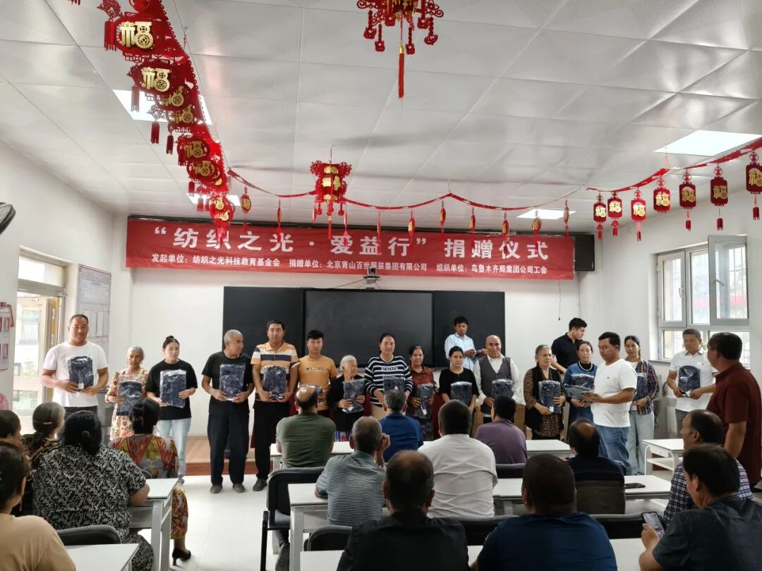 经纬织锦绣,公益暖人心。2025年7-8月,北京青山百世服装集团有限公司参与纺织之光科技教育基金会发起的“纺织之光·爱益行”,精准对接纺织企业的爱心与乡村振兴的需求,用纤维织就了一条连接城市与乡村、企业与群众的爱心纽带,为偏远地区的乡村振兴之路增添了一抹温暖的“纺织”色彩。