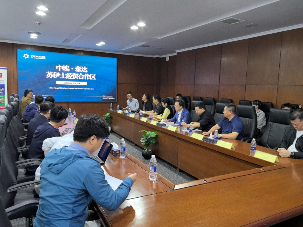 在中埃・泰达苏伊士经贸合作区,负责人对成立背景、发展历程、政策优势、基础配套进行了详细讲解。该合作区是中埃两国政府战略合作共建的国家级经贸合作区,更是中资企业“走进埃及、辐射欧非中东”的核心“桥头堡”,地处“一带一路”与埃及“苏伊士运河走廊经济带”交汇点,凭借税收全免(前10年)、通关便利、保税仓与物流中心配套等优势,已吸引近200家企业入驻,其中纺织企业22家,形成从原料供应到成品出口的初步产业链。