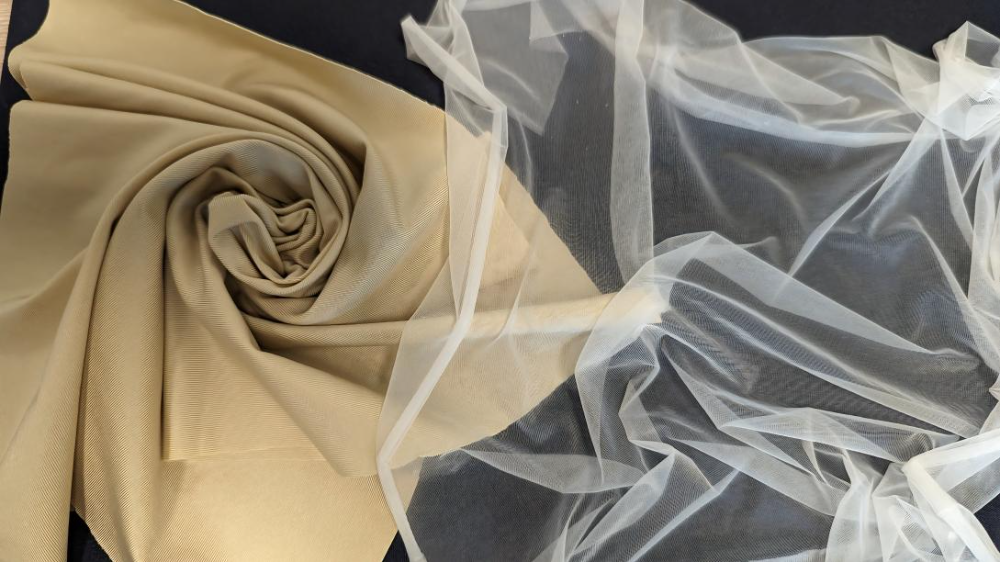 ![]() 尼龙氨纶混纺织物 (左)及分离的氨纶(右)