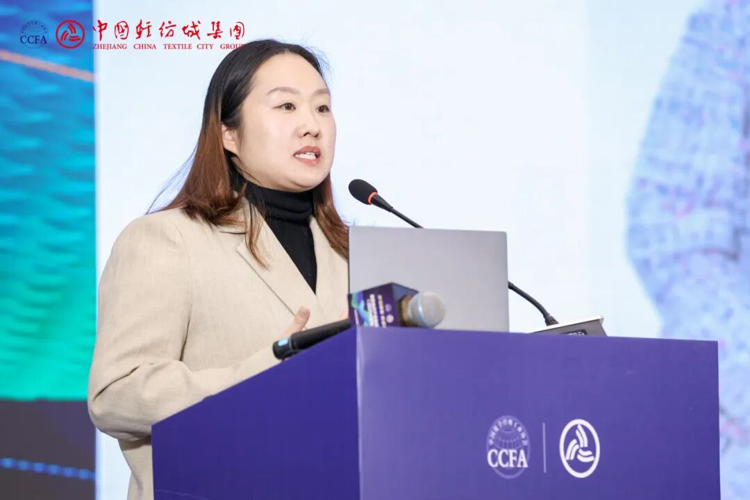 ![]() 九牧王股份有限公司面料研发部执行副总监林庭玥从品牌视角出发,结合空调裤、太空裤等爆款产品的开发,分享了以终端需求为导向的产业链创新路径。她认为,纤维材料决定裤装的形态、性能与穿着体验,选对纤维,产品就成功了一半。但选对纤维只是第一步,更关键的是产业链协同创新,需打通“纤维研发-成衣设计-市场验证”的全链路闭环。她呼吁,产业链上下游携手共进,倡导“需求驱动”的逆向研发机制,打造以科技创新为引擎的高端裤装新生态。