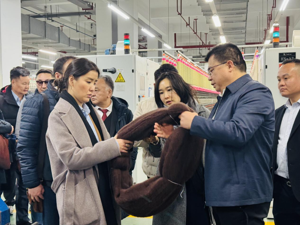 1月30日,蒙古国总统项目规划协调和公民社会政策顾问贾夫赫兰率领的经济考察团一行,莅临中国羊绒纱线出口龙头企业康赛妮集团开展专项考察,通过实地探访生产全流程、开展深度座谈,精准对接中蒙羊毛羊绒产业合作需求,为双方携手构建产业协同生态、共拓全球市场奠定坚实基础。此次考察是中蒙深化绒业合作的重要举措,也是“一带一路”倡议下两国产业互联互通的生动实践。