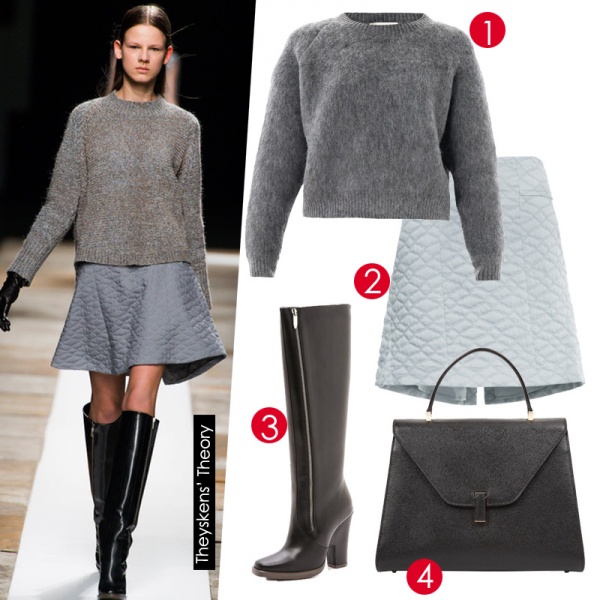 佛罗伦萨,游走维琪奥桥造型:马海毛上衣为秋凉带来一阵暖意,粉蓝色的短裙低调地抹上俏皮色彩,粗跟高靴时髦又便于行走。正在桥边挑选特产的你入乡随俗,Velextra的复古手拎包赋予了此时此刻的浑然天成意大利熟女气息。 1.Stella McCartney毛衣. 2.Theyskens' Theory短裙. 3.Theyskens' Theory靴子. 4.Valextra手拎包.