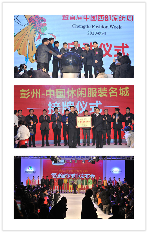 2013年12月25日,以“炫动时尚 魅力彭州”为主题的2013成都时装周在四川省彭州市举行。本届时装周由中国服装协会、中国服装设计师协会主办,中国纺织工业联合会副会长陈树津、中国服装协会常务副会长陈大鹏等出席了本次活动。
