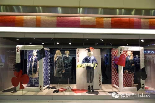 从来没有无缘无故的陈列设计,每一样道具都与品牌风格的表达有着内在联系,不论顾客是否能够驻足品味、看懂其中关键,陈列“依然固我”。休闲风格偏爱乡村元素道具;运动品牌偏爱创意新型道具;街头时尚偏爱颓废风格道具;男士正装偏爱抽象元素道具⋯⋯反向推理,这些橱窗为我们提供了陈列的创意思路。