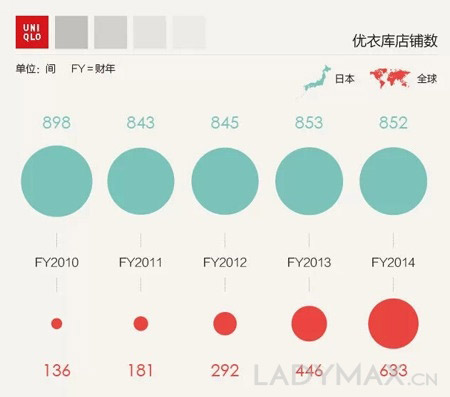 这部分是由于过去1年,优衣库在国际市场大举扩张造成的后果。虽然从销售额和店铺数量的比例上来看,日本本土还是优衣库目前的主要市场,但海外市场和日本本土市场之间的差距正在逐步减小。