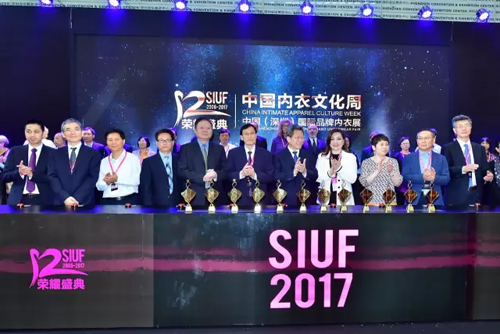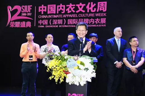 深圳市副市长陈彪宣布2017中国内衣文化周暨SIUF中国(深圳)国际品牌内衣展开幕。 深圳市副市长陈彪,国家工信部消费品工业司司长高延敏、副司长曹学军,国家发改委原副秘书长李扬,中国纺织工业联合会副会长徐迎新、中国商业联合会副会长王耀、中国服装设计师协会主席张庆辉、中国针织工业协会副会长瞿静、中国国际贸促会纺织行业分会副会长常清,深圳市贸促委主任叶健德、深圳市经信委书记张立仁、深圳市中小企业服务署署长顾宏伟、深圳市光明新区管委会副主任胡汝林,广东省纺织协会会长陈统宣、香港内衣业联会主席刘敏姿、深圳市内衣行业协会会长郑碧浩、SIUF创始人张峰伟等领导和嘉宾出席开幕式。