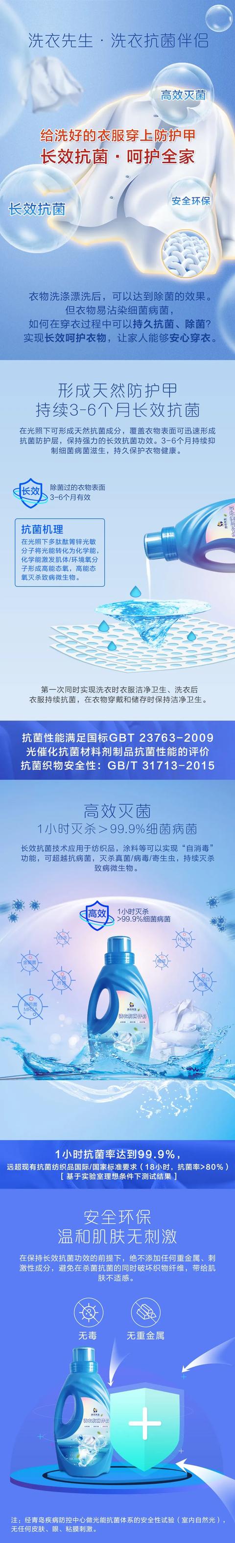 年初,在疫情影响下,织物和家居用品的日常消毒成为大家越来越关注的事情。其中,对于不同面料织物的杀菌消毒,成为很多人的难题,传统的干洗店担心交叉感染不敢去,家里的洗衣机又担心清洗不彻底,且难以处理高端面料的衣物。而这样的难题可以交给智慧物联洗护平台——洗衣先生。 为带来更加健康、洁净、安心的衣物洗护体验,洗衣先生发布“健康精洗服务”,用22道标准化服务工序,以及医用级光能抗菌技术,为纺织的洁净、用户的健康保驾护航! 22道标准化服务工序 14项事关健康 洗衣先生率先推出的“健康精洗”是一项健康服务,更是一套标准、严苛的洗衣工序。从上门取衣到上门配送,共包含22道工序,确保每件衣物享受到标准化的服务工序,这其中14项工序都与健康相关,让用户洗衣体验更加健康、放心、安心。 光能抗菌新品 织物洗1次,最长抗菌6个月 除了标准、严苛的洗涤工序外,洗衣先生在每一道工序过程中都严格确保安全、健康。其中在洗涤区,洗衣先生放了大招,整合优质生态资源方,基于光能抗菌技术,研发“洗衣抗菌产品”——洗衣抗菌伴侣,为居家、穿衣提供长效抗菌解决方案。 什么是光能抗菌技术? ——持续杀菌机理 在光的照射下,光敏分子将特定波长的光能转化为化学能,将环境中氧分子激发到高能态,高能态的氧将致病微生物灭杀。 光照下, 一个光敏分子源源不断地产生高能态氧分子, 持续将致病微生物灭杀,而光敏分子本身不被消耗。 ——无光抑菌机理 材料表面捕获接触致病菌,光敏分子的多肽链进行捕获细菌,使细菌细胞被膜被破坏而死亡。 基于光能抗菌技术的“有光灭菌、无光抑菌”,洗衣先生,整合优质生态资源方,研发出“洗衣抗菌伴侣”,实现织物的安全、高效、持续抗菌! 洗衣抗菌伴侣有两个使用场景: 1、洗衣——洗衣抗菌伴侣(液体式) 【使用方法】 机洗——倒入洗衣机的柔顺剂注入口,每公斤衣物加入5-10ml洗衣抗菌伴侣; 手洗——在衣物洗涤最后一次漂洗中,每公斤衣物,取5-10ml洗衣抗菌伴侣,加3-6L水稀释,织物在其中浸泡3-5分钟,拧干,晾干。 【用量】 1公斤衣物(3-5件衬衣)取5-10ml洗衣抗菌伴侣 【抗菌参数】 织物抗菌率>99.9%以上 抗菌织物安全性:抑菌圈< 3mm (微溶出) 2、居家——洗衣抗菌伴侣(喷雾式) 【使用方法】 喷洒在衣物或家纺产品表面,实现日常穿衣及家居生活的长效抗菌。 【用量】 根据衣物长度和尺寸,适量喷洒 【抗菌参数】 织物抗菌率>99.9%以上 抗菌织物安全性:抑菌圈< 3mm (微溶出) 微蒸汽空气洗 长效杀菌呵护衣物 洗衣先生作为海尔衣联网旗下专业洗护生态品牌,整合 专家表示,56°、30分钟可有效灭活病毒,空气洗可以轻松实现杀菌消毒效果,并且纤维蒸汽烘干、面包柔护内筒等先进技术,呵护衣物。 洗衣先生通过“空气洗”解决不能干洗不能水洗的高端衣物护理,通过湿洗解决大部分高档面料护理难点,与洗衣店现有设备高度互补。 健康专属洗 一客一桶一消毒 如果你担心与他人衣物混洗的困扰,洗衣先生的专属洗服务,则采用单筒独立洗涤独立烘干,每筒洗后均使用蒸汽喷枪进行设备消毒,创造健康安全的洗护环境。 作为智慧物联洗护品牌,洗衣先生在海尔衣联网生态平台上,能够整合到更多生态资源,为用户带来更佳的体验。而这次率先提出的“健康精洗服务”及标准化流程规范,为用户提供更加健康、安心、洁净的洗护体验,也有望为行业提供标准化的流程,为洗护行业赋能。 |