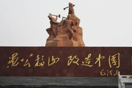 1957年10月9日 毛泽东写下“愚公移山,改造中国”的批语 1957年10月9日,毛泽东写下“愚公移山,改造中国”的批语。山东省莒南县厉家寨原是个穷山村。1955年冬,这里的农民削岭填沟,把1000多块零碎地块平整成70多块,计1520亩的“三合一”水平梯田(即修埝培埂、深翻整平、挖蓄水沟三项工程结合的梯田)。同时修建小型水库11座,建谷房1600座,11800亩荒山全部植树。1956年粮食平均亩产279公斤,比治理前增长4倍多。为此,毛泽东写下批语“愚公移山,改造中国,厉家寨是一个好例。”“愚公移山,改造中国”成为当时中国几亿农民精神面貌的真实写照。
